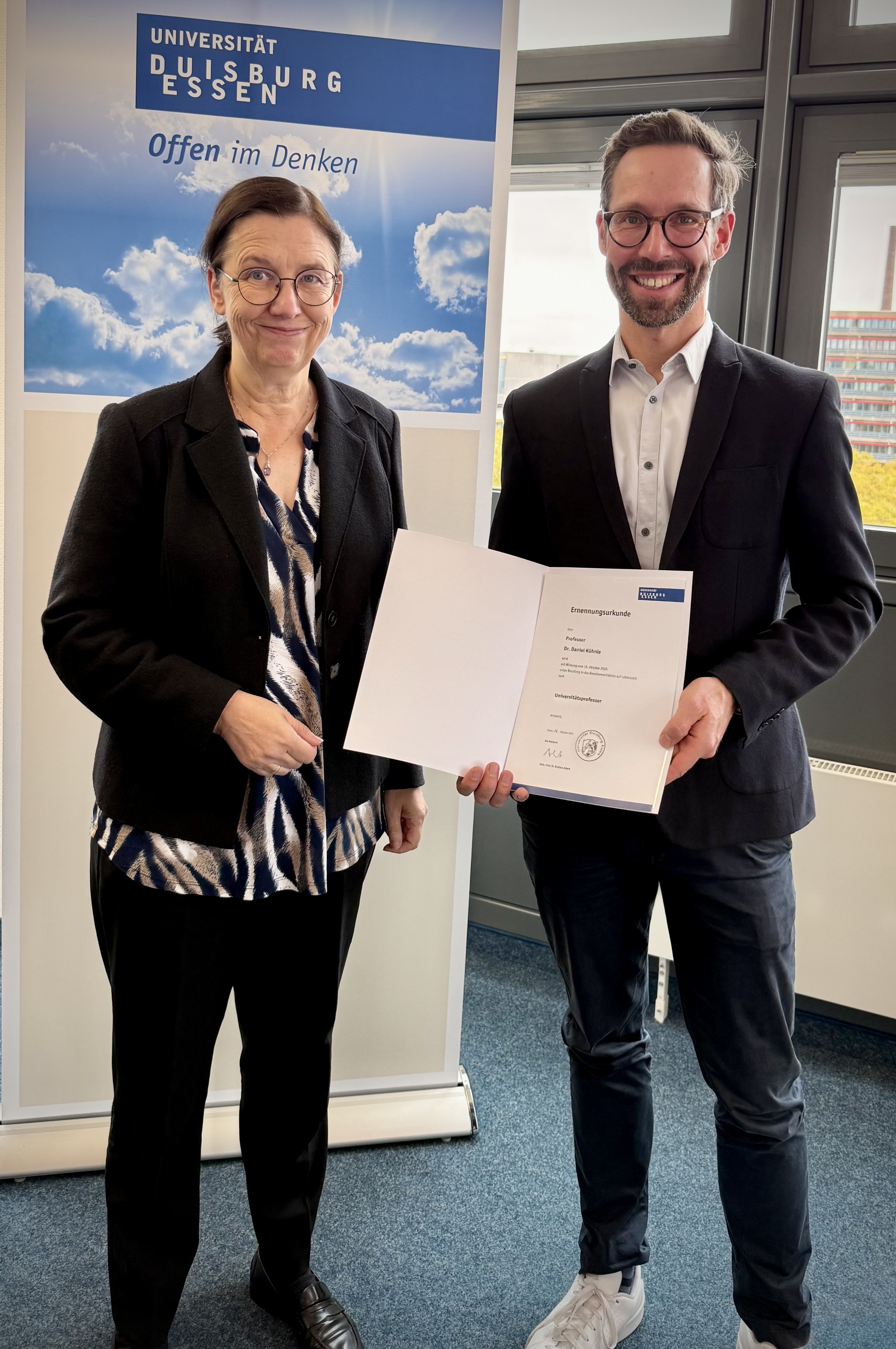 Zum 15.10.2025 übernimmt er den Lehrstuhl für Volkswirtschaftslehre, insbesondere Arbeitsmarkt und Gesundheit, an der Universität Duisburg-Essen und führt seine Arbeit in Forschung und Lehre nun auf unbefristeter Professur fort.